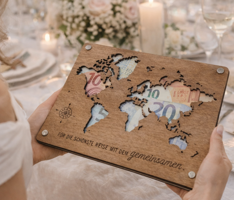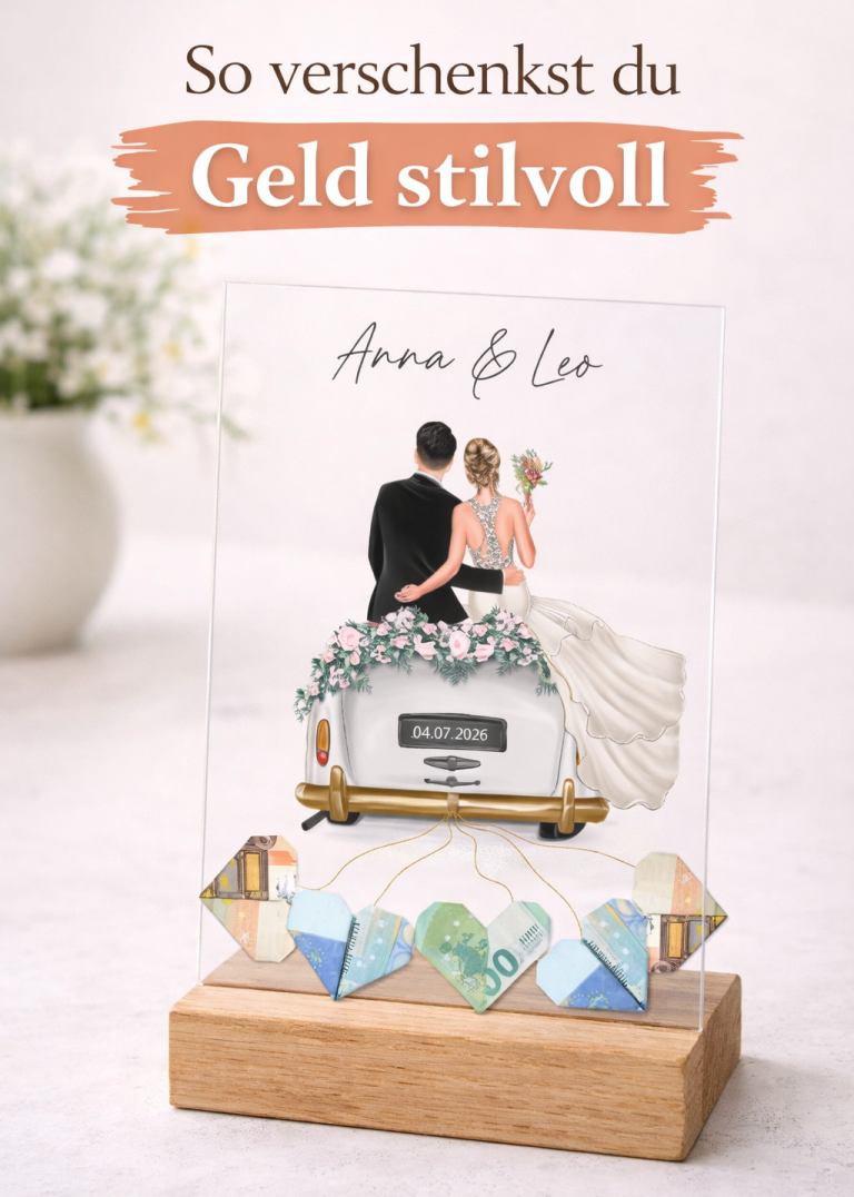 Gerade in Zeiten, in denen viele Paare sich Geld wünschen, hebt sich dieses Geschenk deutlich ab und zeigt, dass du dir wirklich Gedanken gemacht hast.