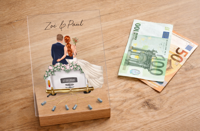 Mit Namen und Datum gestaltet, wird aus einfachem Geld ein echtes Highlight, das das Brautpaar noch Jahre später aufbewahrt.