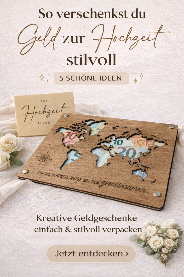Geld zur Hochzeit zu verschenken ist praktisch – aber oft leider auch langweilig. Ein einfacher Umschlag wirkt schnell lieblos und geht zwischen anderen Geschenken unter.