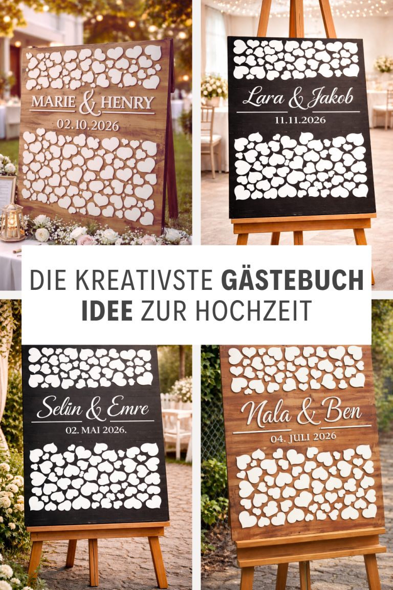 Hier findest du die schönsten und modernsten Gästebuch Ideen für Hochzeiten 2026 – perfekt für Sommerhochzeiten, Frühlingshochzeiten oder elegante Feiern.